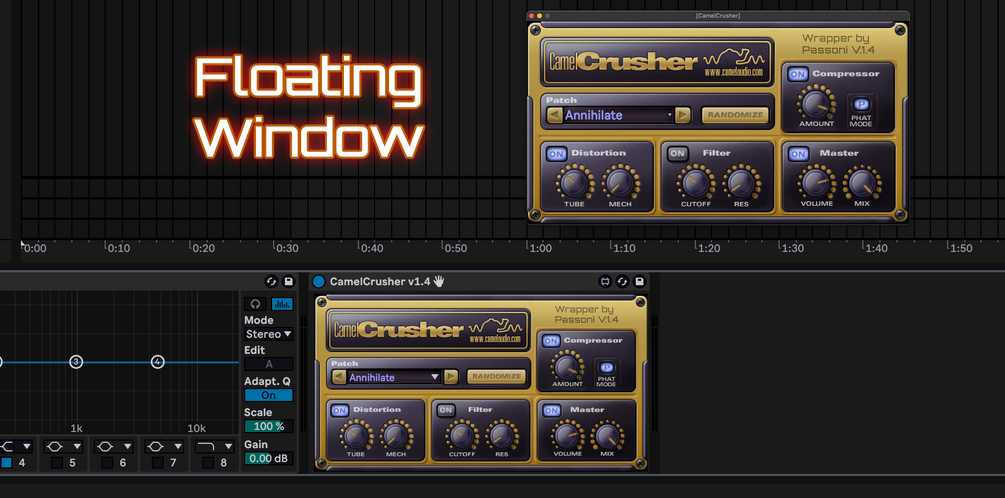 Same as V1.3 + FLOATING WINDOW! Just click in the CamelCrusher logo to Open/Close.